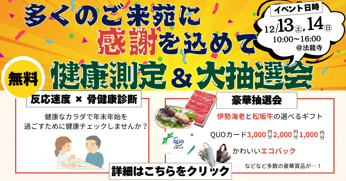 樹木葬の見学や相談ができるだけでなく、気軽に健康チェックも楽しめる内容です。