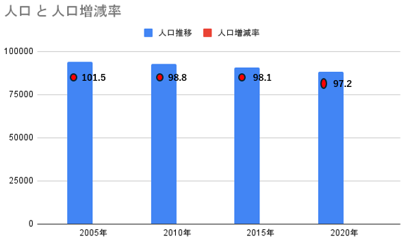甲賀市の総人口(総数)は平均より1.22倍と比較的多い市区町村です。